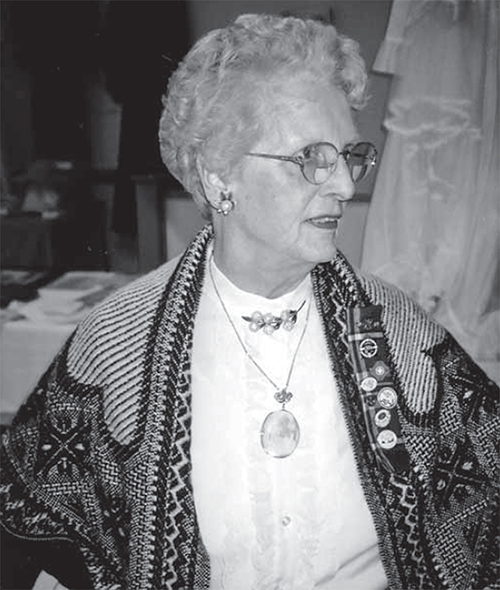 Janet Firman wearing jewellery and shawl belonging to her great-grandmother. Courtesy P Janes.
